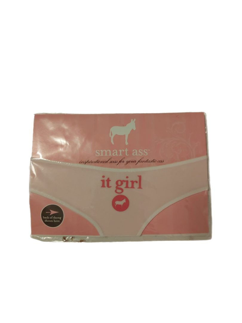Upgrade your top-drawer essentials with the Smart Ass thong. This crisp white piece is designed for the modern “It Girl” who loves a mix of minimalist style and bold attitude. Featuring a sleek, high-cut silhouette, it showcases “Smart Ass” typography on the front and a signature “It Girl” detail at the back.